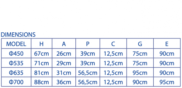 Available dimensions from Φ450 to Φ700